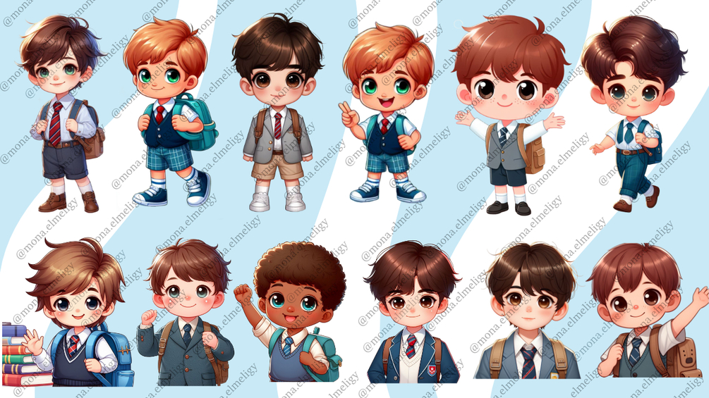Delightful set of cute designs, made just for boys, perfect for the Back to School season, all in high-quality resolution