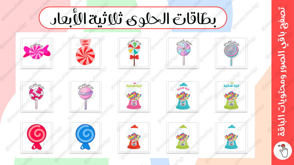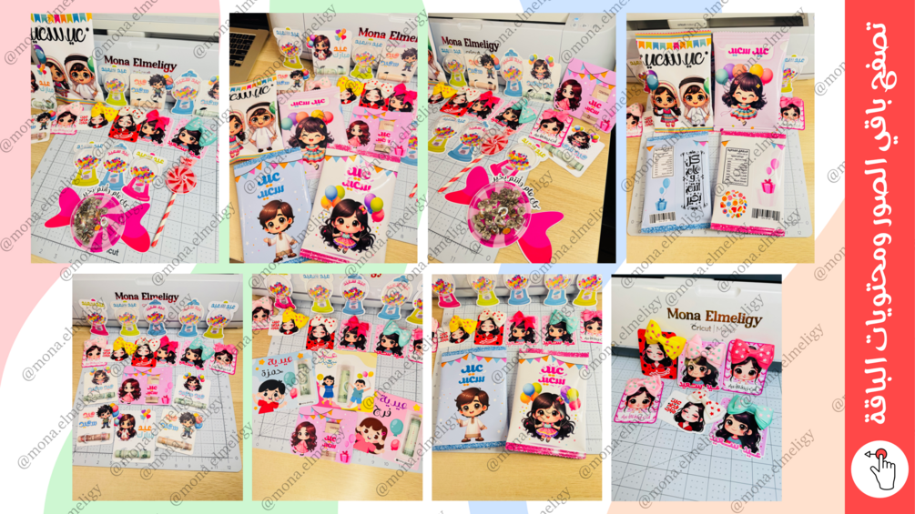 ستحصل على باقة تشمل تصاميم مختلفة من أكياس الحلوى / بطاقات العيدية / بطاقات الحلوى ثلاثية الأبعاد بالإضافة إلى ملفات مجانية مميزة