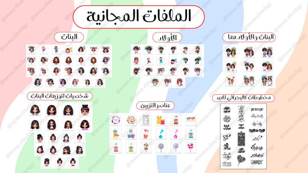 كذلك عناصر مختلفة للتزيين (صور بالونات / صور حلوى العيد ... الخ)