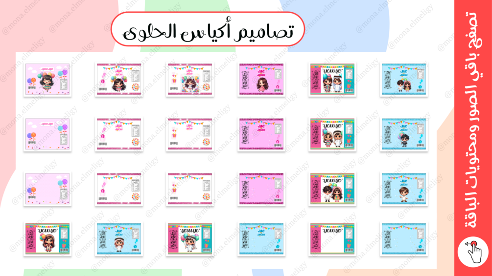 ستحصل على باقة تشمل تصاميم مختلفة من أكياس الحلوى / بطاقات العيدية / بطاقات الحلوى ثلاثية الأبعاد بالإضافة إلى ملفات مجانية مميزة